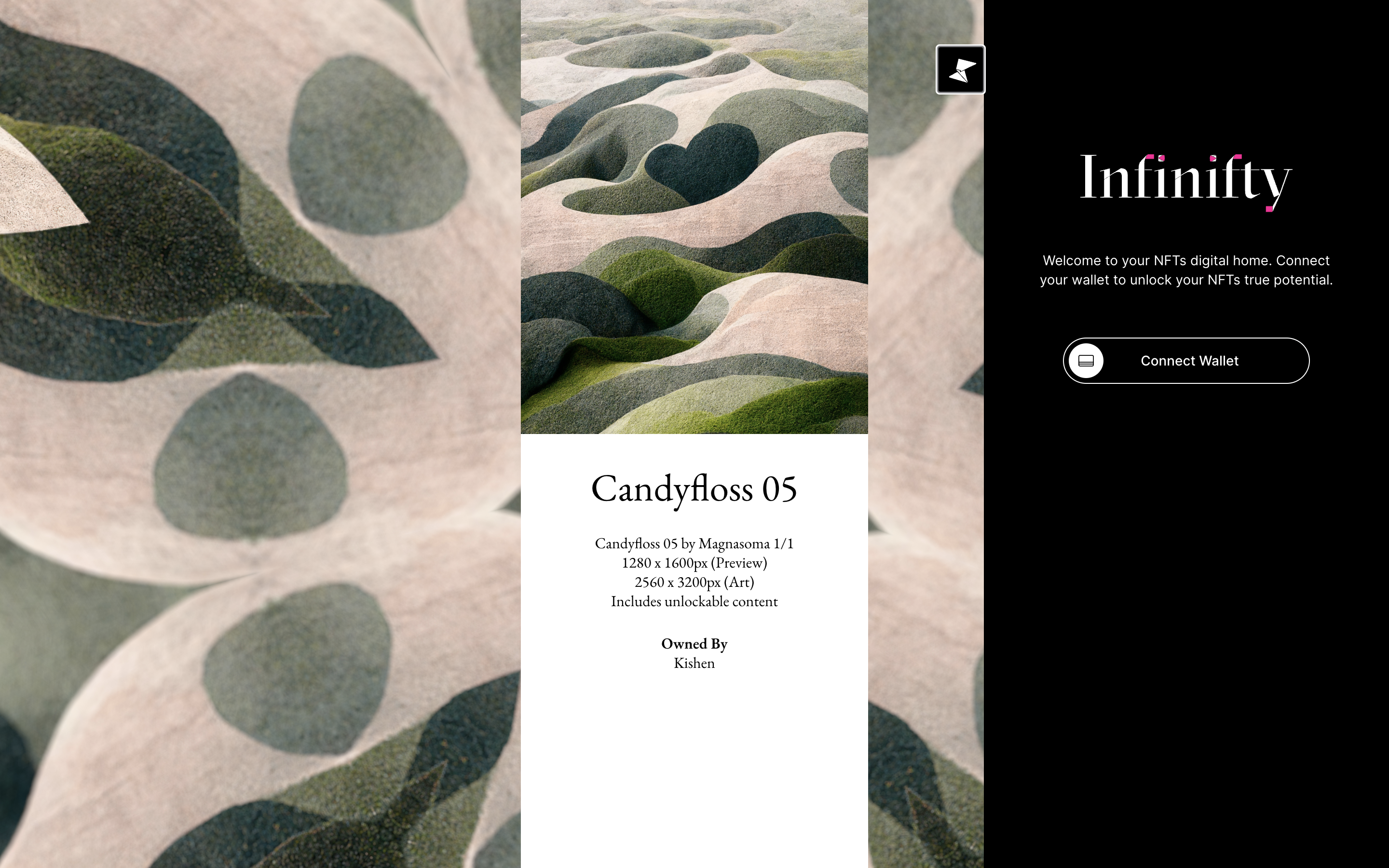 Tap the logo to revel the edit panel, and tap the Connect Wallet button. Sign your wallet when requested to allow Infinifty to check whether the NFT linked to this Base website is located within it.
